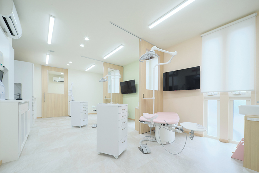 お子さまがリラックスして過ごせるよう、院内は明るくやさしい雰囲気づくりを心がけています。歯医者さんが“こわくない場所”になるように。